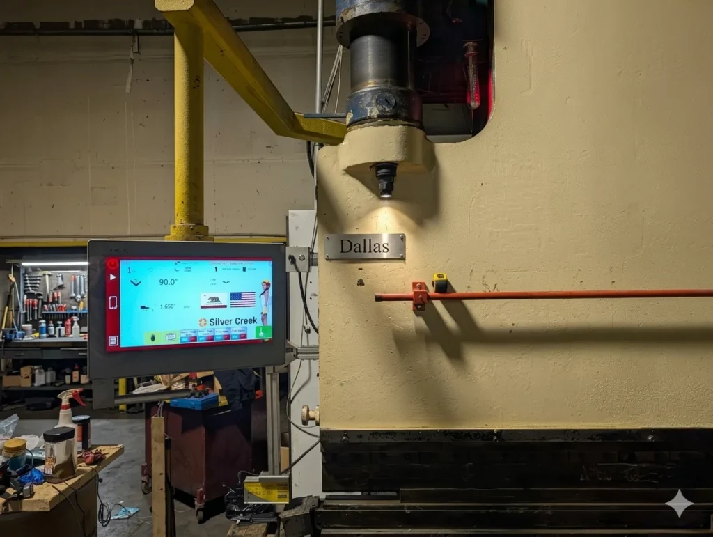 This 12 ft Durma press brake at Bay Cities Metal Products in Los Angeles was fully restored following a major failure. Instead of replacement, the machine was retrofitted with a modern CNC system and upgraded infrastructure, bringing it to current production standards.