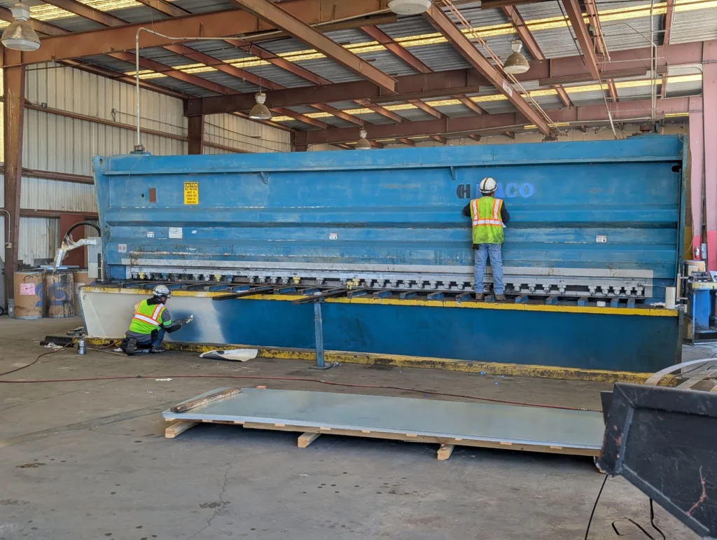 This 26 ft Durma shear—likely one of the largest in California—operating at Silver Creek Modular in Perris, CA. After repeated failures, the machine was out of service for several years.
