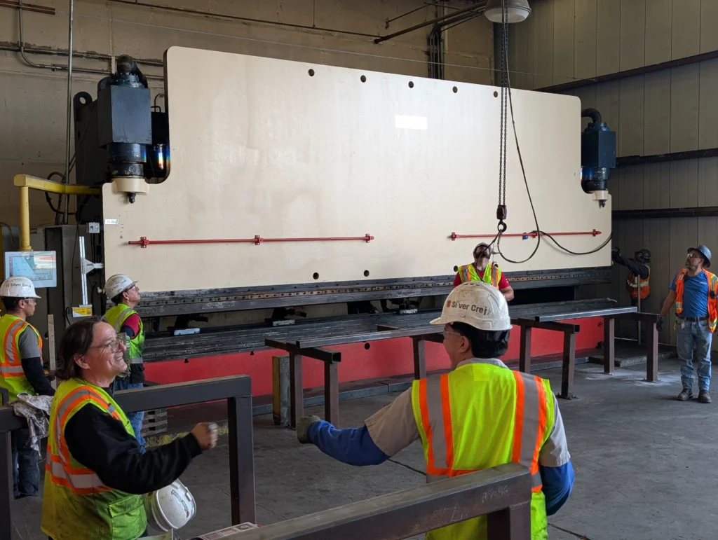 This 26 ft press brake—one of the largest in California—located at Silver Creek Modular in Perris, CA, had been out of operation for approximately seven years.Through a combined effort with the Silver Creek maintenance team, the machine has been fully restored and upgraded into a modern, high-tech system.